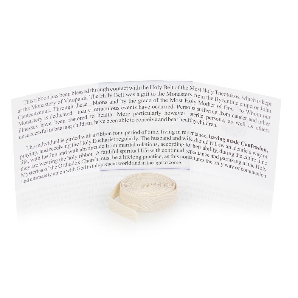 Because the ribbon of the Holy Belt is a blessed object from Mount Athos, it must be treated with respect and care. Under no circumstances should it be thrown away in the trash or in an unclean place.